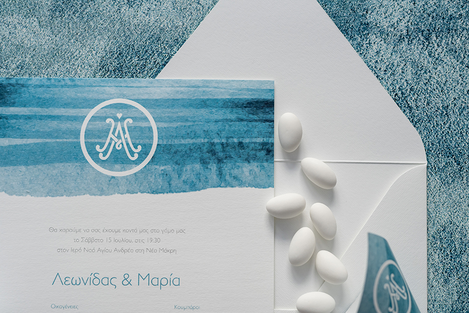So if you’re looking for the right idea for the best summer wedding ever, look no further. You can easily kick off your own celebration with an idea like this amazing, summery invitation that happen to be perfectly suited to the season. Here is one of our favourite wedding stationery designed by us exclusively for our beloved Leonidas & Maria.